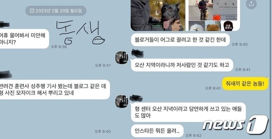 동생은 “물어봐서 미안해. 아니지? 반려견 훈련사 성추행 기사 봤는데, 블로그 같은 데 형 사진 모자이크해서 뿌리고 있다”고 알렸다.