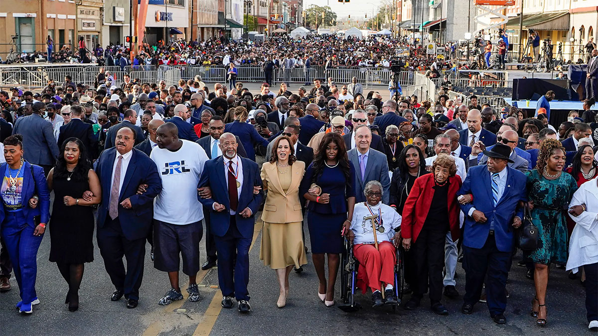 셀마에 온 카멀라 해리스 “하마스, 휴전안 받아들여야”