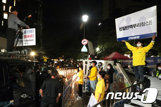 12일 서울 종로경찰서에 따르면 경찰은 이날 새벽 반일행동 회원 A씨를 공무집행방해 혐의로 현장에서 체포했다.