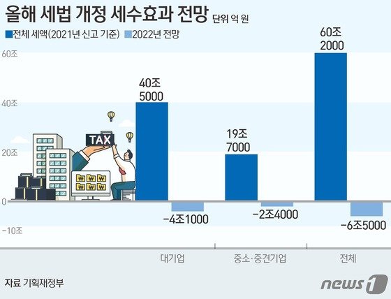 22일 기획재정부에 따르면 전날 발표한 2022년 세제 개편안은 법인세 최고세율 인하와 과세표준 단순화, 종부세 다주택 중과 폐지·세율 인하·공제 확대, 소득세 과표 구간 조정 등을 통해 국민과 기업의 세금부담을 줄여주는 게 핵심이다.