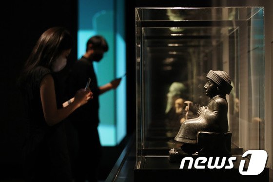 전시품 중 도시 라가쉬를 통치했던 ‘구데아'(기원전 2150∼2125년 재위)의 조각상이 눈에 띄는데 오른쪽 어깨를 노출한 이 조각상은 오른팔 근육을 더 돋보이게 표현했다. 양희정 학예연구사는 “이는 왕이 될 자격을 갖췄음을 나타내는 것”이라고 설명했다.