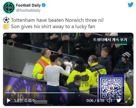 관중들은 경기 종료 후 대승을 견인한 손흥민을 연호했다. 이에 팬들에게 감사 인사를 전하던 손흥민은 홈 관중석의 어린이 팬을 발견하자 유니폼 상의를 벗어 이를 전달했다.