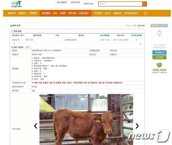 한국농축산식품유통공사는 4일 지난달 29일부터 이날까지 강릉축협 내 우량송아지 12마리에 대한 온라인 경매가 시범적으로 이루어졌다고 밝혔다. 총 낙찰금액은 4522만원이다.