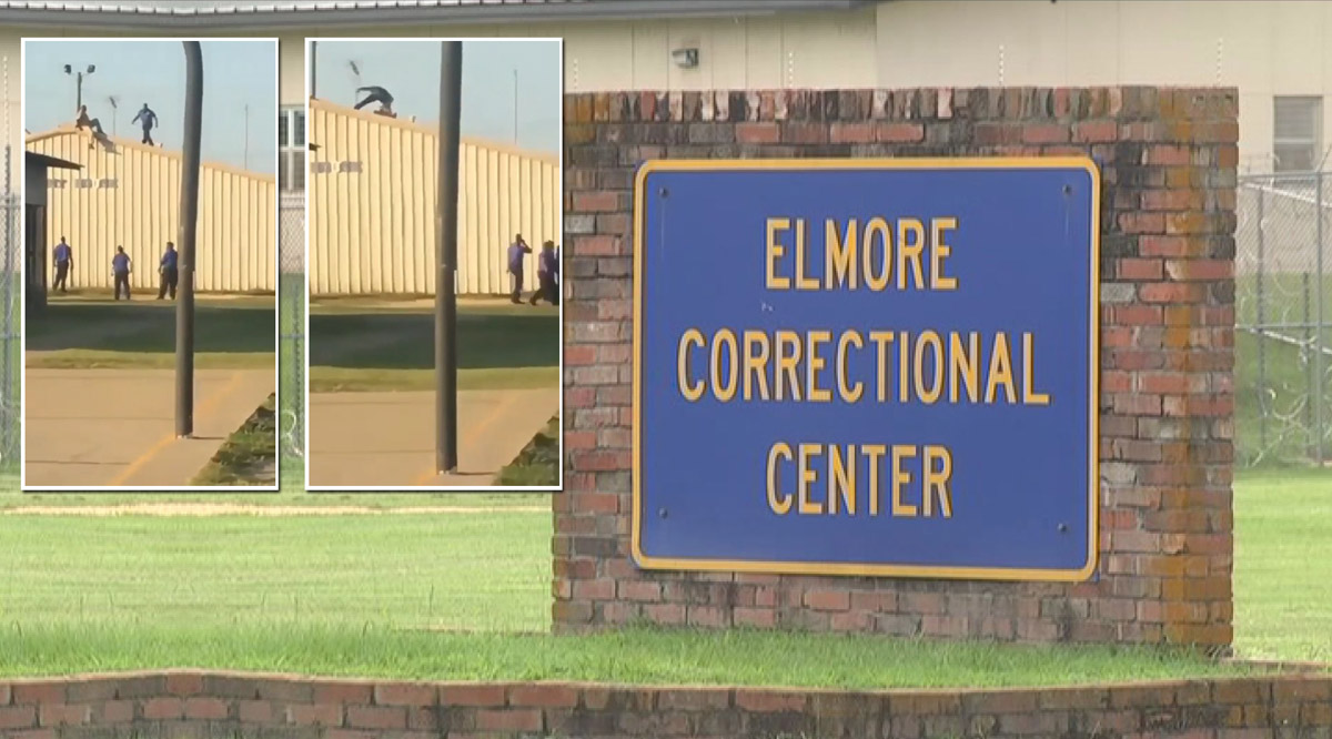 소셜 미디어에 유포되는 문제의 동영상은 엘모어 교정 시설 건물의 지붕 끝자락에서 한 수감자가 괴로워하는 듯한 모습을 보여준다.