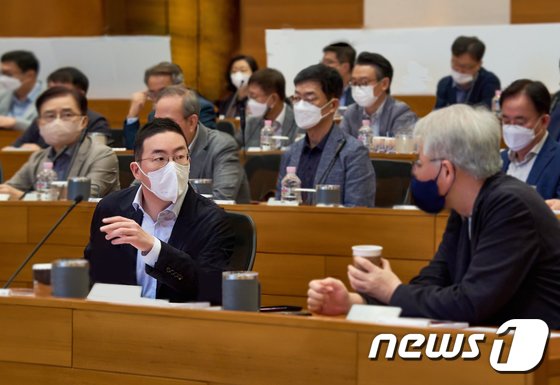 구광모 (주)LG 대표가 경기도 광주시 곤지암리조트에서 열린 ‘LG 사장단 워크샵’에서 최고경영진과 대화를 나누고 있다. (LG 제공) 2022.9.30/뉴스1
