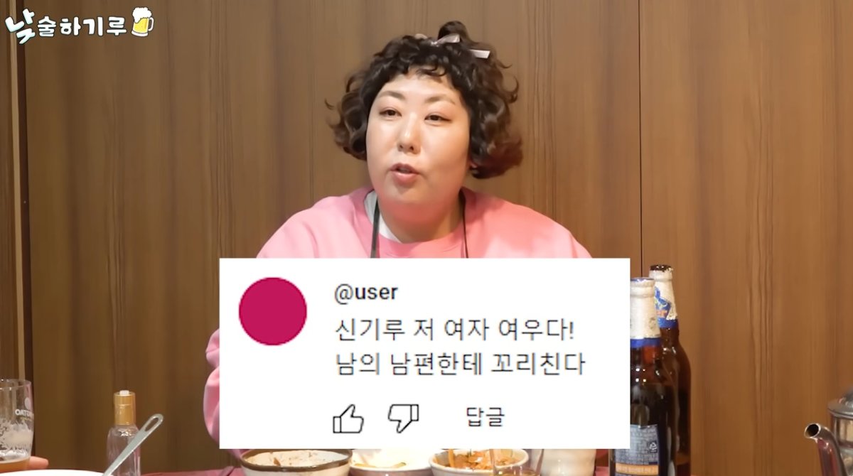 이어 “은형이도 먹는 걸 좋아하지만 먼저 딱 그만 먹고 나하고 재준이는 계속 먹는다. 우리는 또 먹는 걸 강요 안 한다. 그게 방송에 나왔는데 그런 망측한 댓글은 처음 봤다. 한 시청자가 ‘신기루 저 여자 여우다. 남의 남편한테 꼬리 친다’고 댓글 달았다”고 전했다.