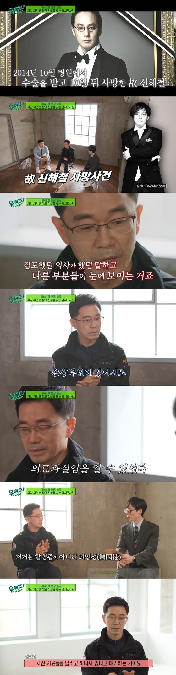 김진영은 고(故) 신해철 사망 사건을 언급했다. 그는 2014년 10월 병원에서 수술을 받은 후 10일 만에 사망했다. 당시 수술한 의사는 인정할 수 없다면서 혐의를 부인했다. 김진영은 “부검부터 참여했다”라면서 “집도의가 말했던 것과 다른 부분이 있었다, 손상 부분도 합병증이 아니라 의인성, 시술을 하다 잘못된 형태일 가능성이 높았다”라고 말했다.