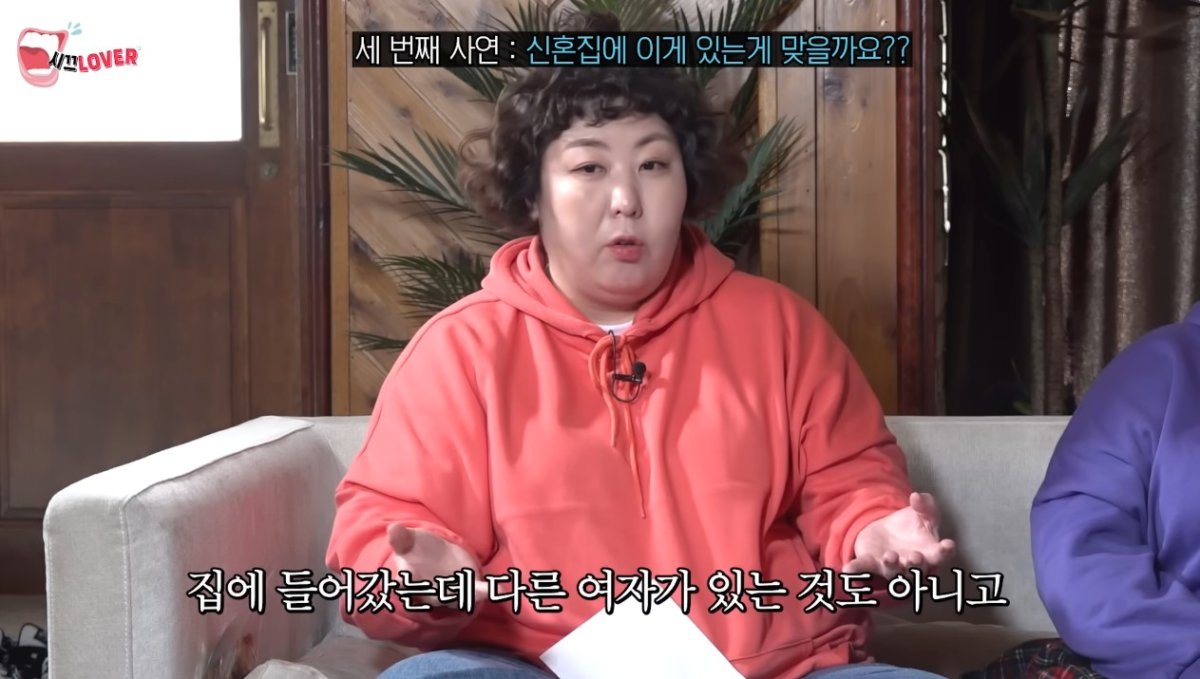 사연을 들은 신기루는 “난 괜찮다. 인정한다. 집에 들어갔는데 다른 여자가 있는 것도 아니지 않냐”고 아무렇지 않다고 말했다. 반면 홍윤화는 “나랑 함께 사는 신혼집에 저런 게 있으면 싫다. 만약 성인용품이 있더라도 부부가 함께하는 거라면 괜찮다”고 했다.