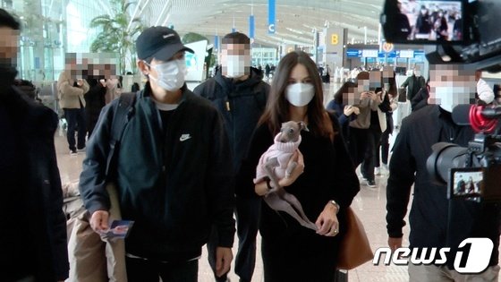 배우 송중기(왼쪽)와 아내 케이티 루이스 사운더스/박혜성 기자