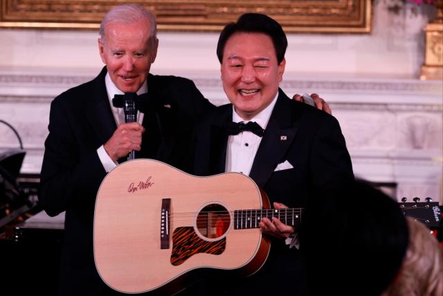 바이든 대통령은 윤 대통령이 평소 맥클린 팬이라는 점을 인지하고 만찬 말미에 맥클린의 친필 사인이 담긴 통기타를 깜짝 선물했다. 윤 대통령은 맥클린의 대표곡 아메리칸 파이를 직접 노래했고 장내에는 기립 박수가 쏟아졌다.