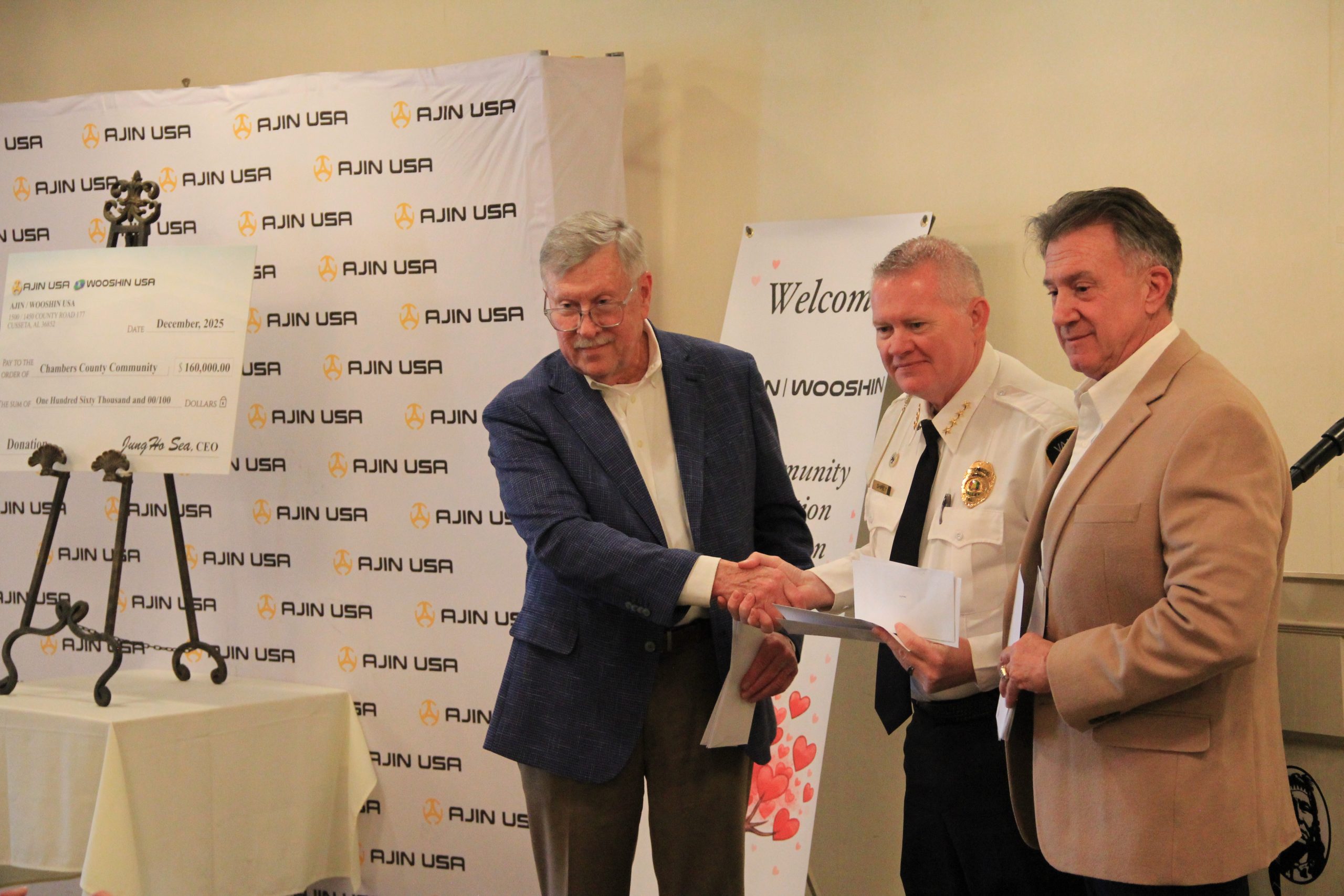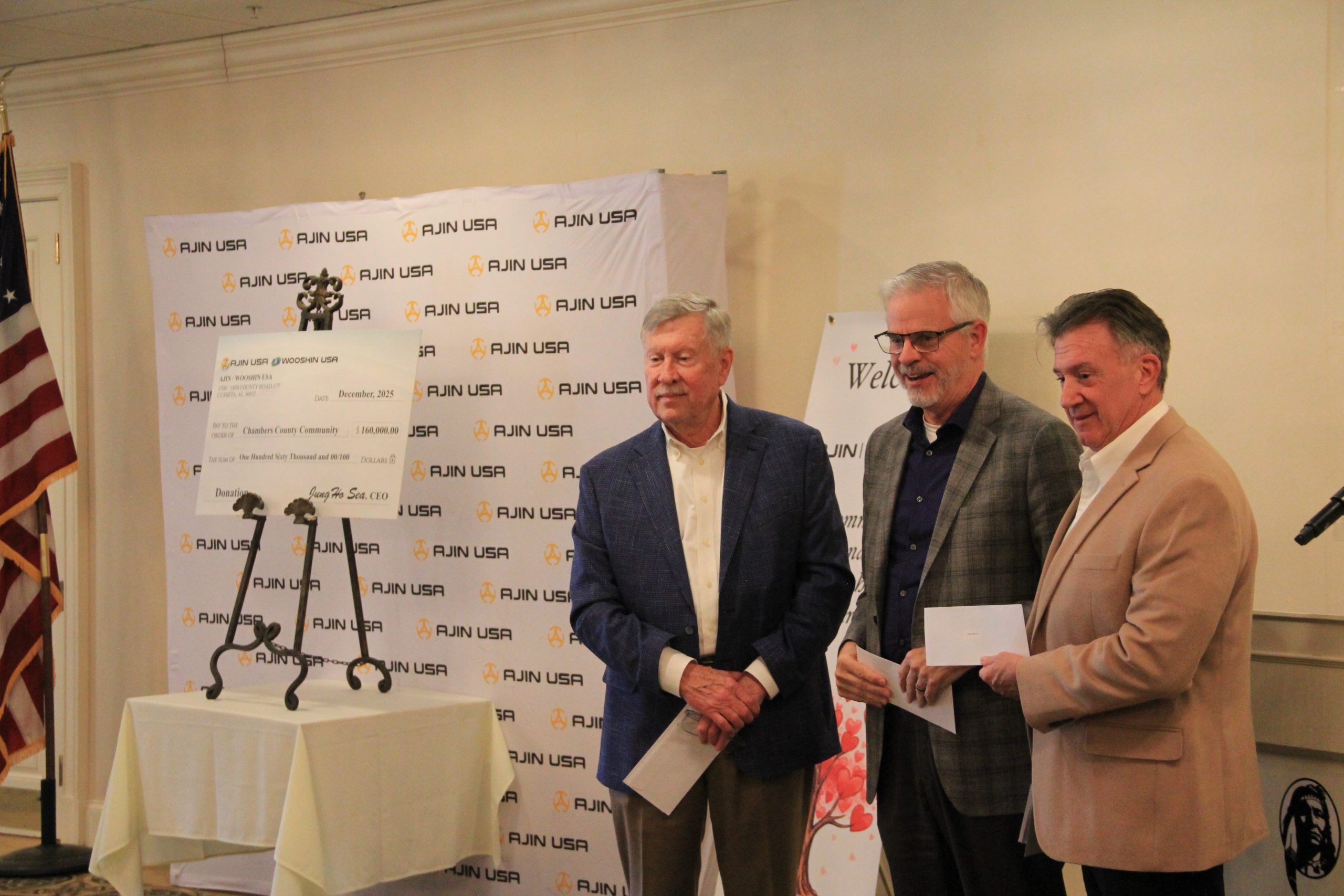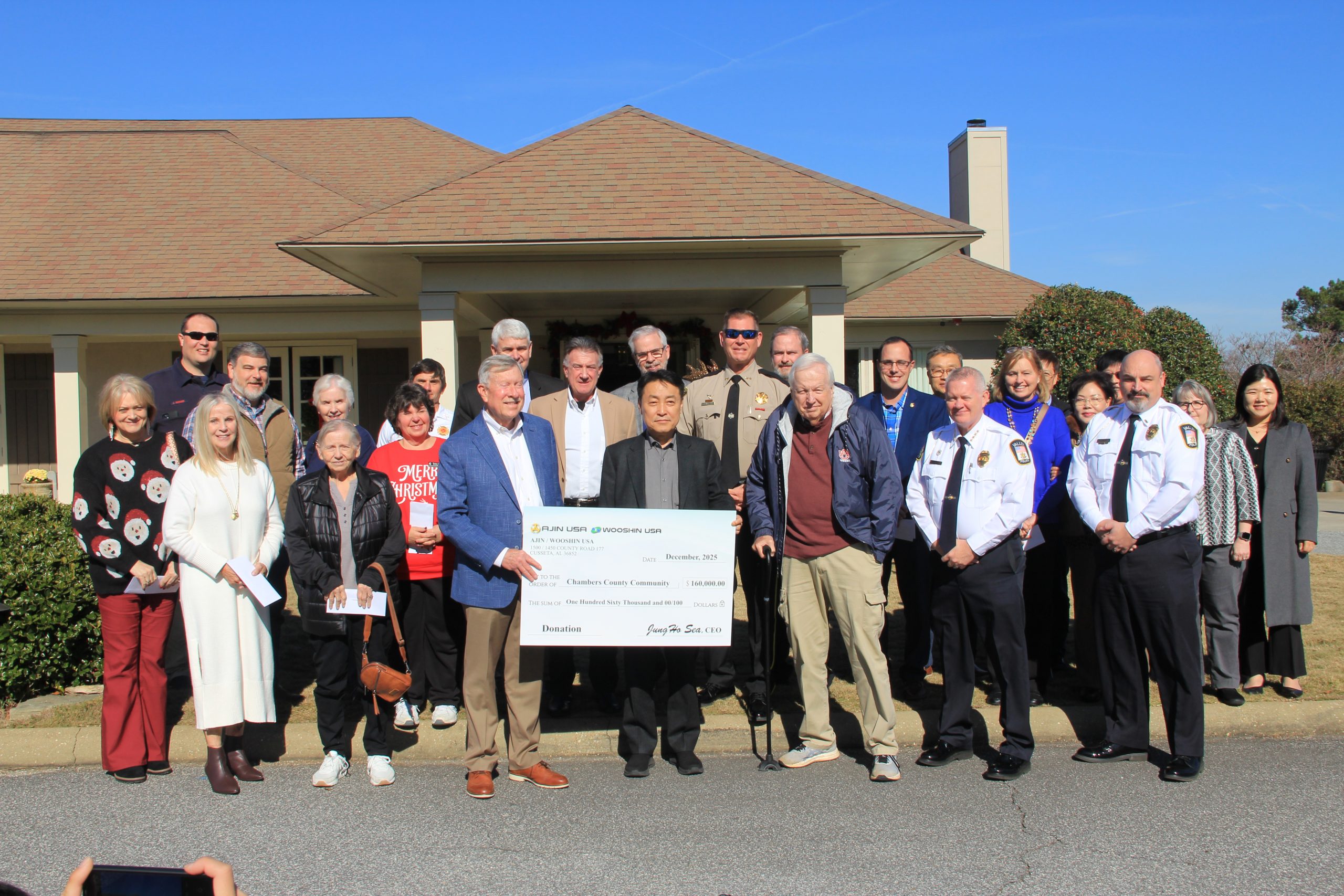 아진 USA와 우신 USA는 서중호 회장의 주최로 2025년 연례 커뮤니티 기부 오찬 행사를 개최하고, 챔버스 카운티 주요 공공·교육·자선기관에 총 16만 달러의 기부금을 전달했다.