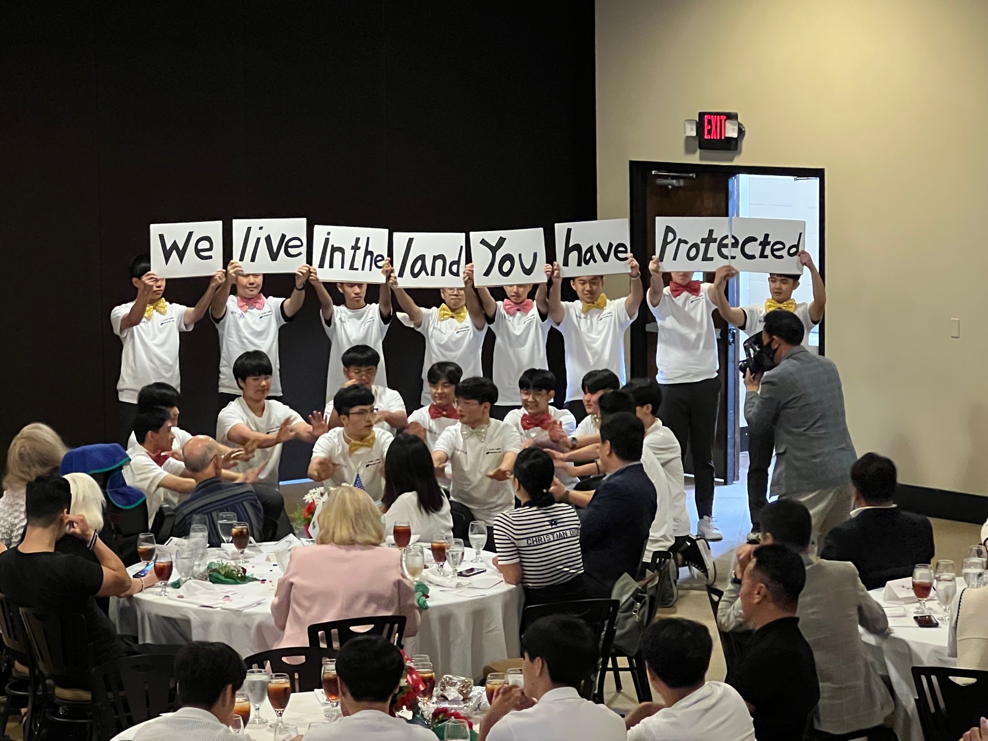 또한 애틀랜타 한국문화원 무용단의 민속춤, 가야금 연주 등에 이어 멀리 한국에서 날아온 대건 고등학교 학생들이 합창을 부르면서 “우리는 당신이 보호해준 땅에서 살고 있습니다”(We live in the land you have protected)라고 씌여있는 피켓을 들어올려 참석자들의 눈시울을 뜨겁게 했다.
