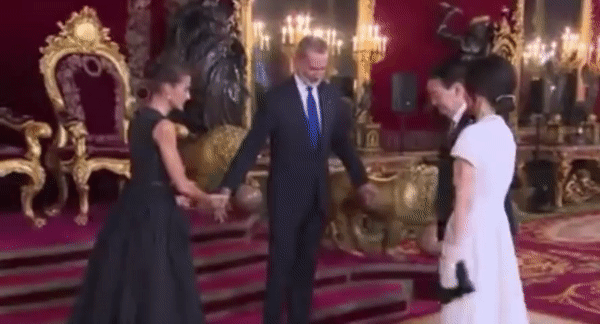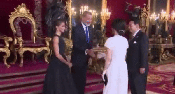 윤 대통령 내외가 왕궁에 들어선 후 스페인 국왕 부부는 만찬장 공식 포토존(촬영구역)에서 윤 대통령 내외를 반갑게 맞았고, 네 사람은 서로 악수를 나누고 기념촬영을 했다.