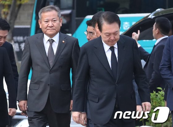 이를 두고 정치권에서는 윤 대통령이 전날까지 나흘 연속 조문하는 과정에서 이 장관과 동행하는 등 이 장관을 여전히 신뢰하는 모습을 보인 점이 반영된 것이란 관측이 나온다.