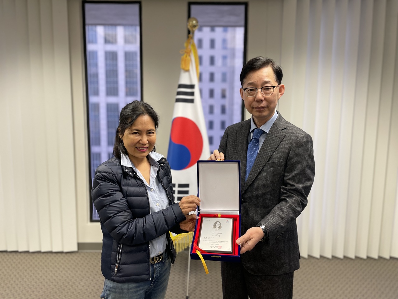 이날 박윤주 총영사는 고 앤 우수상 수상자에게 상패와 상금(한화 250만원)을 전달했다. 김수아 학생은 일정상 내년 1월에 상패와 상금(한화 50만원)을 전달할 예정이다.