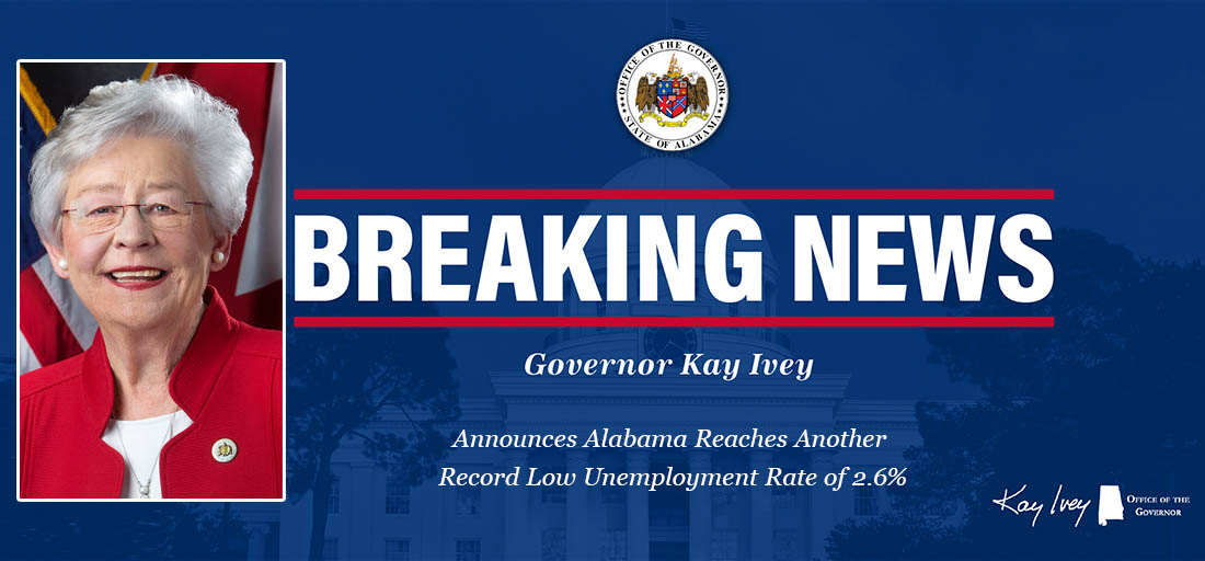 아이비 주지사는 보도자료를 통해 “우리가 또 다른 실업률 2.6%라는 대기록에 도달함에 따라 좋은 소식이 계속해서 들어오고 있다”면서 “앨라배마주는 3개월 연속 사상 최저의 실업률을 기록했다. 우리의 주와 주민들에게 미래는 계속해서 더 밝아 보인다.”라고 말했다.