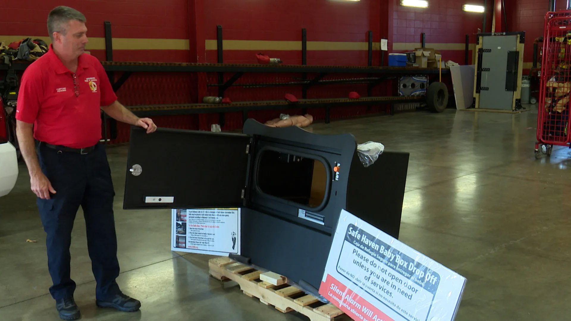 매디슨 소방관이 베이비박스에 대해 소개하고 있다. 사진=WHNT.com