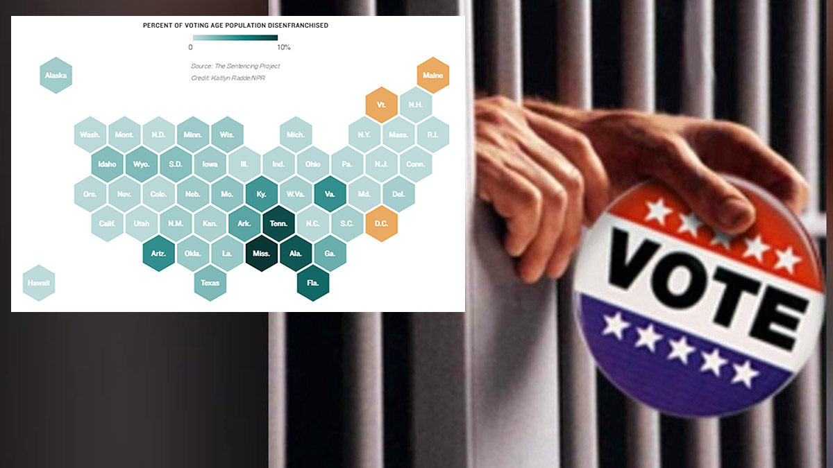 전국적으로 중범죄자 참정권박탈 현황을 파악해 보고한 “선고 프로젝트”(The Sentencing Project)에 따르면, 전국적으로 460만명이 참정권을 박탈당했으며, 이는 전국 유권자 연령층 인구의 2%에 해당한다.