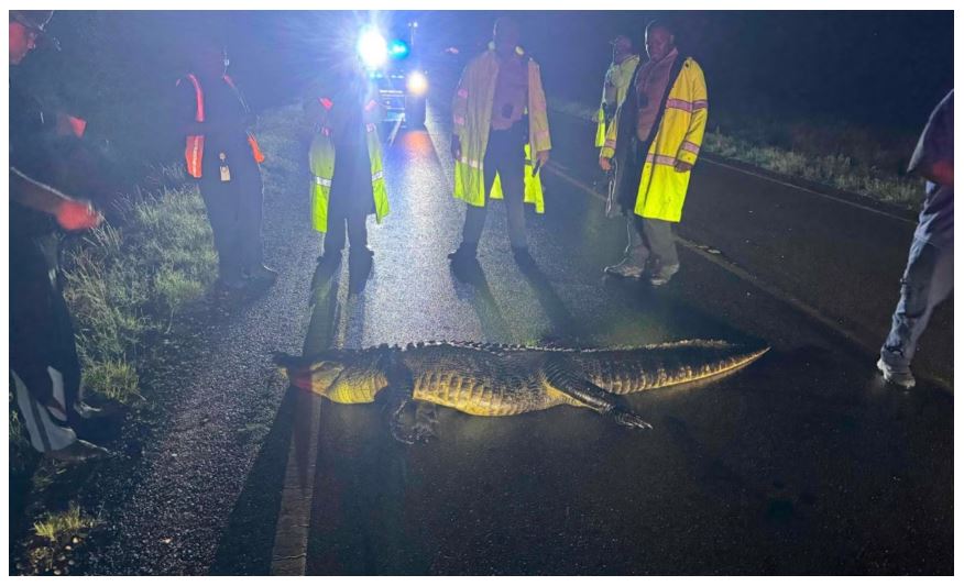 관계자들은 운전자가 가벼운 부상만 입었다고 밝혔으며, 차량은 사고 후 견인됐고 악어는 충돌로 인해 사망했다.