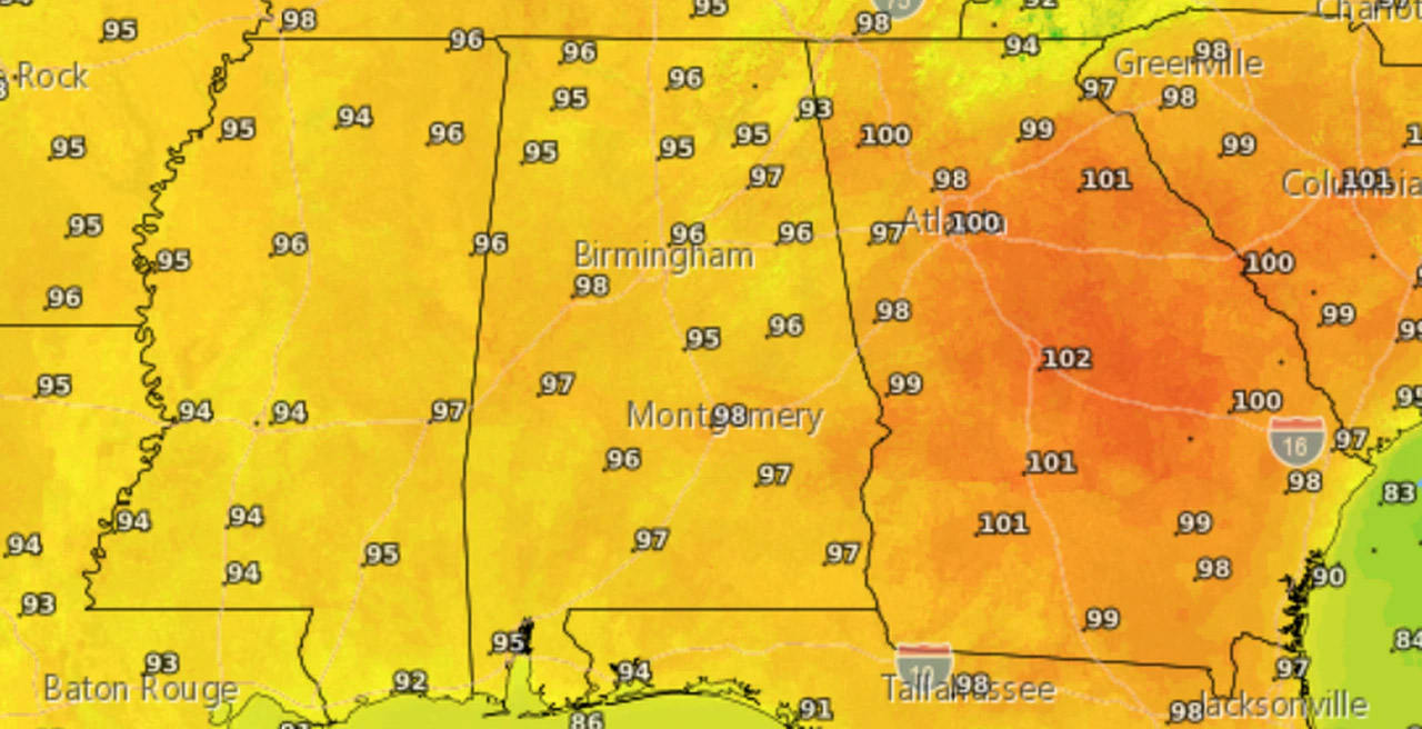 앨라배마 주 전역에 폭염 특보가 계속되고 있다. 오늘 앨라배마 전 지역에 평년 기온을 웃도는 예보가 다시 나왔다.