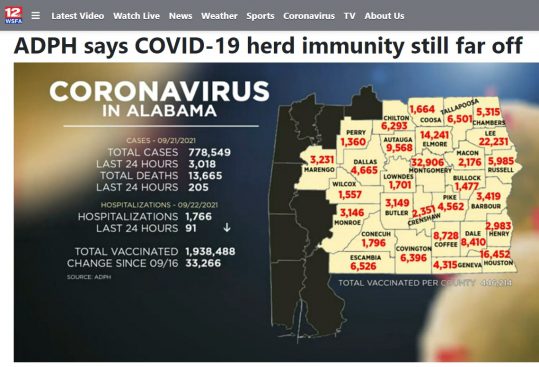 24일 앨라배마주 보건부에 의하면, 앨라배마주는 백신 접종률이 증가하고있지만, 앨라배마 주의 집단 면역을 얻는 목표로부터 아직 멀었다는평가가 나왔다.