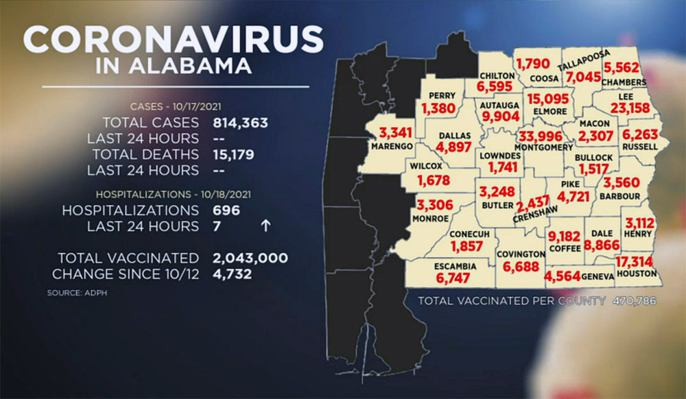 앨라배마는 최근의 급증이 완화됨에 따라 코로나19로 병원에 입원한 비율도 떨어져 9월에 거의 3천 명이 입원했던 것이 지금은 1천명 이하로 떨어졌다.