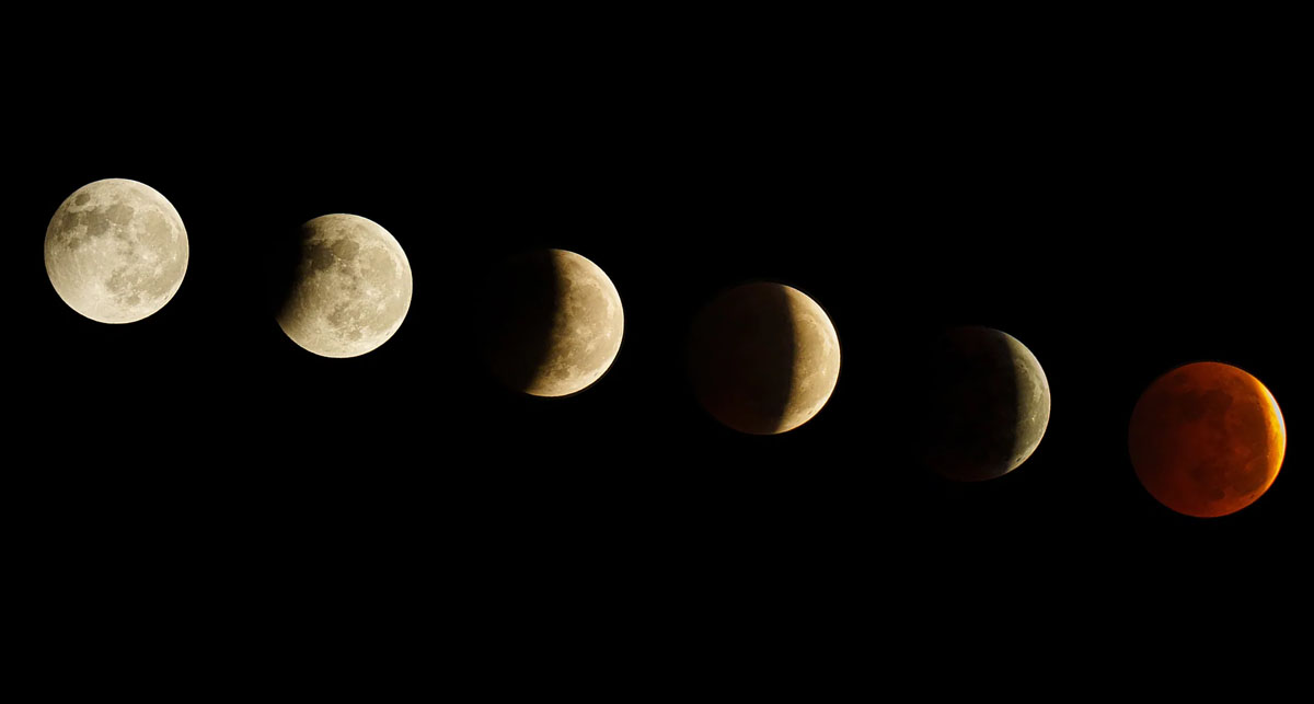 – 2단계(오전 1:18): 달은 지구의 어두운 그림자, 즉 본영(本影)으로 들어간다. 이것은 부분 월식이 공식적으로 시작되는 때다. 여기서 보는 변화는 훨씬 더 극적이고 눈에 띌 것이다. 달이 어두워지고 결국 붉은 색을 띠게 되며, 훨씬 더 많은 별들이 보이고 바깥의 전체적인 모습은 어두워진다.