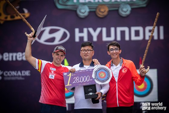 김우진은 17일(한국시간) 멕시코 틀락스칼라에서 열린 2022 현대양궁월드컵 파이널 남자 리커브 결승전에서 미구엘 알바리노 그라시아(스페인)에 7-1로 승리했다.
