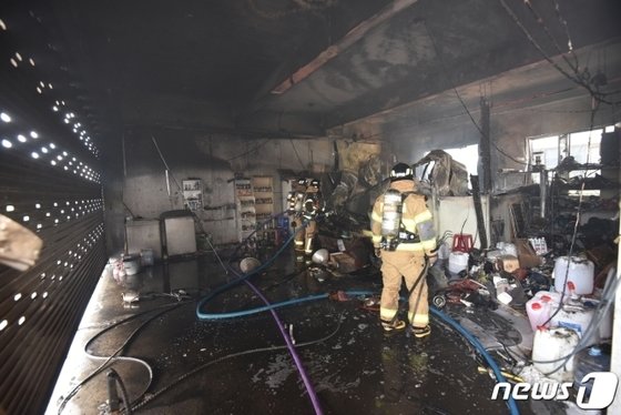 대전소방본부에 따르면 24일 오후 2시께 대전 유성구 복용동 한 중고차매매단지 근처 차량정비업체에서 불이 났다.