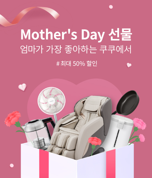 모두 모았습니다. 쿠쿠의 Mother’s Day 최대 혜택을 놓치지 마세요.