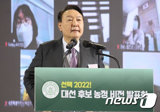 윤석열 국민의힘 대선 후보가 4일 오후 서울 송파구 잠실학생체육관에서 열린 대선후보 농정 비전발표회에서 농정비전을 발표하고 있다. 2022.2.4/뉴스1 © News1 국회사진취재단