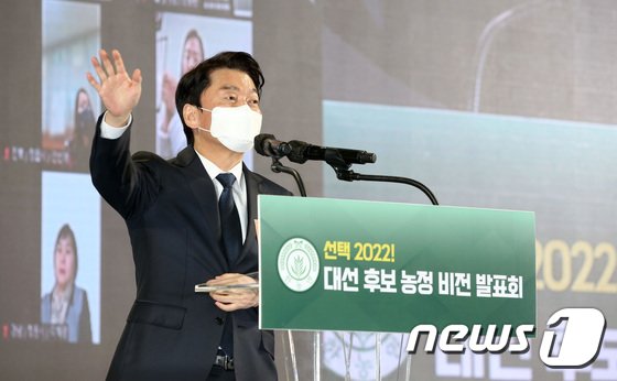 안철수 국민의당 대선 후보가 4일 오후 서울 송파구 잠실학생체육관에서 열린 대선후보 농업정책 비전 발표회에서 농정 비전을 발표하고 있다. 2022.2.4/뉴스1 © News1 국회사진취재단