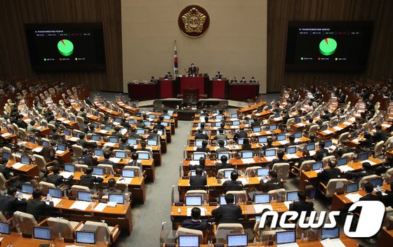 2일 오후 서울 여의도 국회에서 열린 제391회 정기국회 제12차 본회의에서 역내포괄적경제동반자협정(RCEP) 비준동의안이 가결 처리되고 있다. 2021.12.2/뉴스1 © News1 오대일 기자