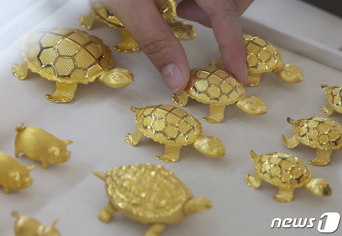 금값이 사상 최고 수준으로 오르면서 강세를 보이는 가운데 11일 서울 종로구 한국금거래소에서 직원이 금을 정리하고 있다. 2024.3.11/뉴스1 © News1 김민지 기자