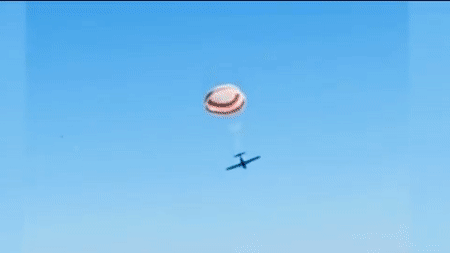 또 빨강색 비행기 조종사는 비행기 낙하산을 펼쳐 뛰어내려 인근 주택 단지 공터에 무사히 착륙했다.