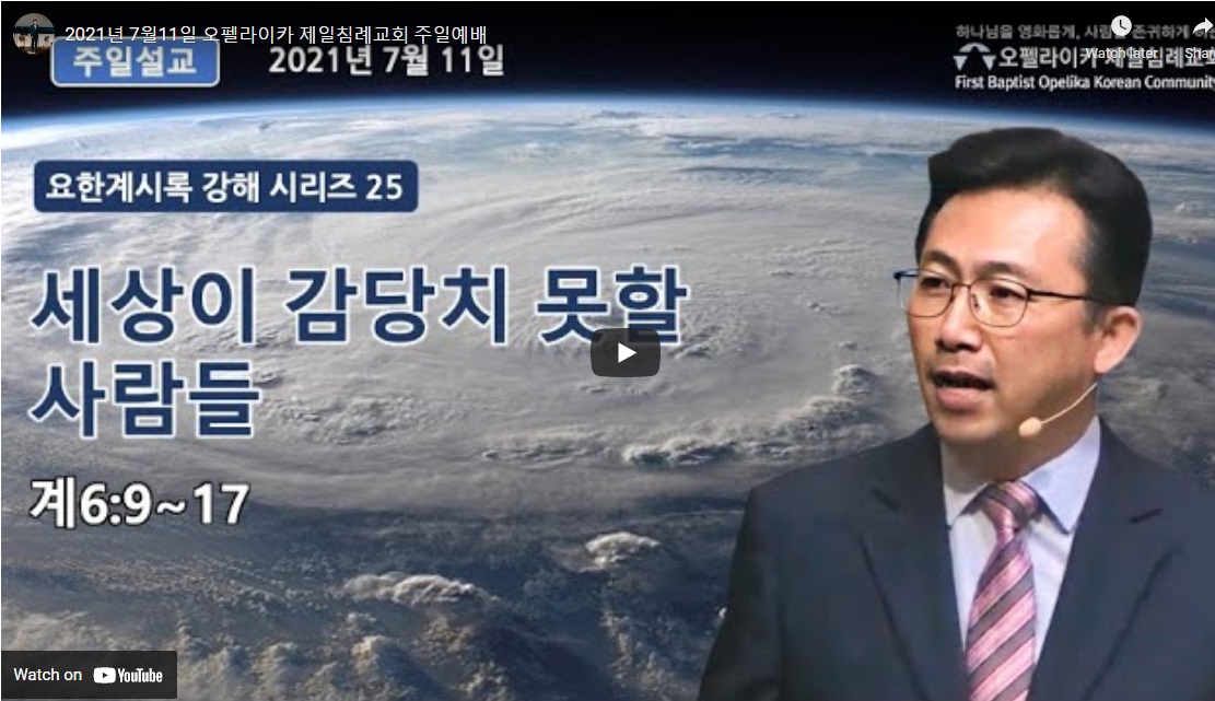 [영상] 오펠라이카 제일침례교회 7월11일 주일예배