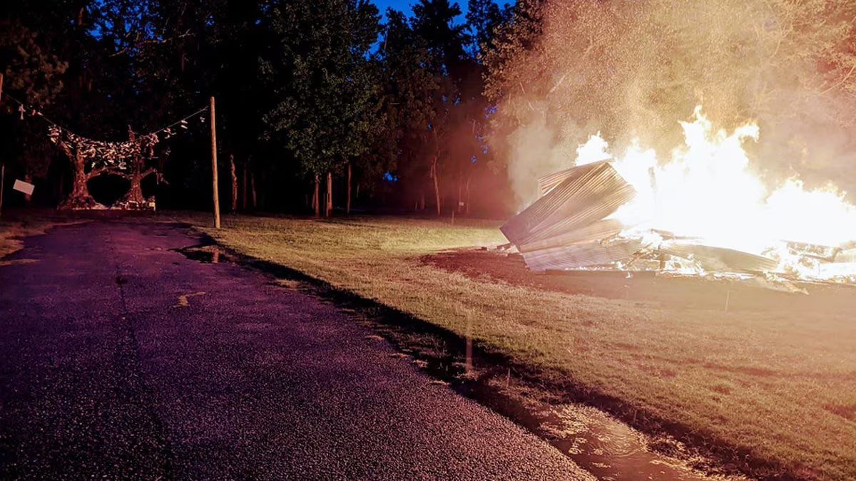 밀브룩 소재 '잭슨 레이크 아일랜드'의 한 집이 벼락을 맞아 불에 타고 있다. 사진=페이스북 페이지