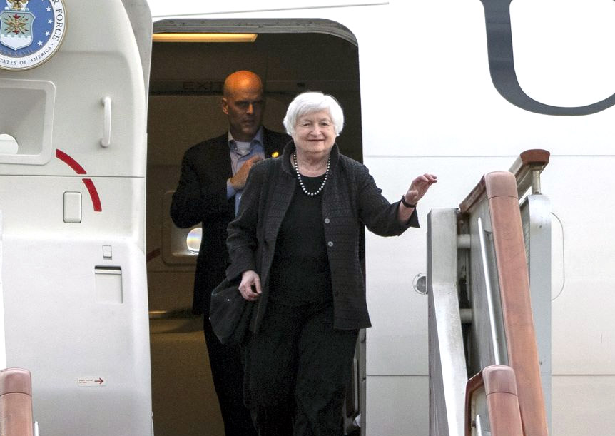 6일(현지시간) 중국에 도착한 재닛 옐런 재무장관.