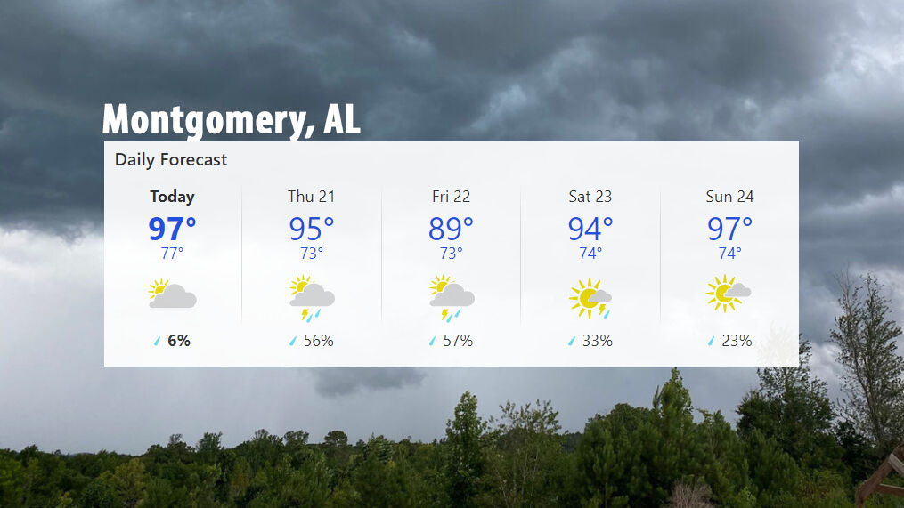 수요일(20일) 앨라배마 대부분의 지역에서는 90도 중후반에 건조하고 훈훈한 날씨를 보이다가 이번 주 후반에는 소나기와 폭풍이 다시 찾아오겠다.