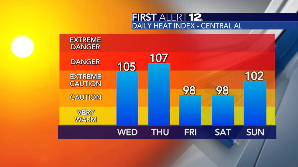 매일 오후는 열대성 습도를 고려할 때 100도 초반에 있는 것처럼 느껴질 것이다. 그리고 오늘과 내일 105도에 육박하는 잠재적 더위 지수가 예상되면서 중부 앨라배마주의 많은 카운티에 더위 주의보가 내려졌다.
