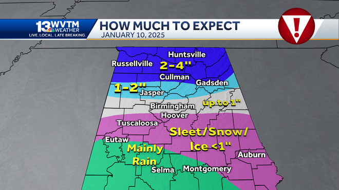 앨라배마 전역에 겨울 날씨가 48시간 동안 걷잡을 수 없이 퍼질 예정이며, 주의 *일부* 지역에 눈과 얼음이 내릴 위험이 있다고 WSFA 12 뉴스가 8일(수) 보도했다.