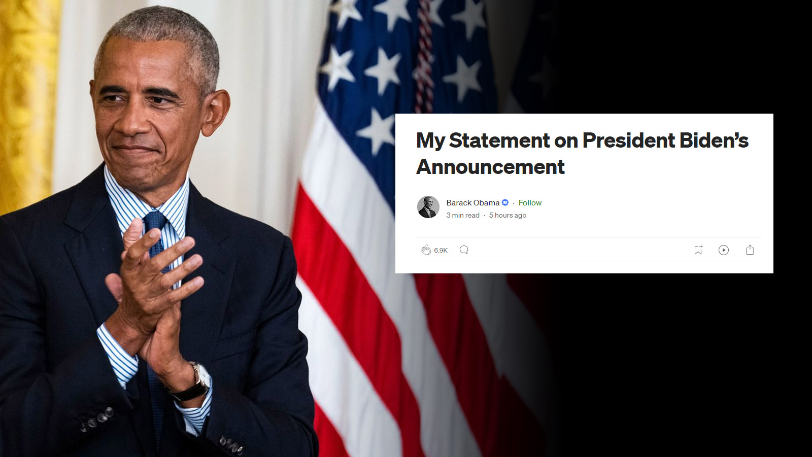 오바마는 집권 당시 바이든을 부통령으로 선택했었다. 그러나 최근 바이든에 대한 사퇴 압박이 가해지자 다른 민주당 고위 인사들과 함께 바이든에게 사퇴를 촉구했었다.