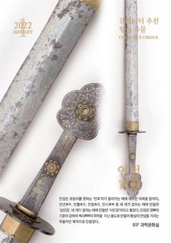 문화재청 국립고궁박물관은 2022년 호랑이해를 맞아 ‘인검'(寅劒)을 1월의 ‘큐레이터 추천 왕실 유물’로 정해 국립고궁박물관 상설전시장 ‘과학문화실’에서 소개하고, 3일부터 문화재청과 국립고궁박물관 유튜브로 온라인 공개한다.