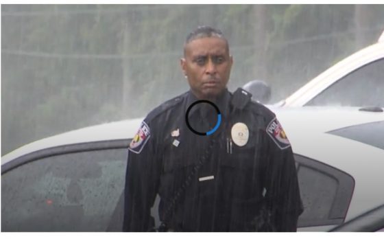 ABC 로컬 33/40방송은 앨라배마의 한 경찰관이 폭풍우속에 모자를 벗고 제복을 입은채로 비를 맞는 모습을 방영했다.