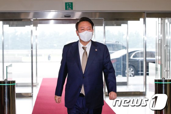 윤석열 대통령이 29일 오전 용산 대통령실로 출근하고 있다. 2022.9.29/뉴스1 © News1 안은나 기자