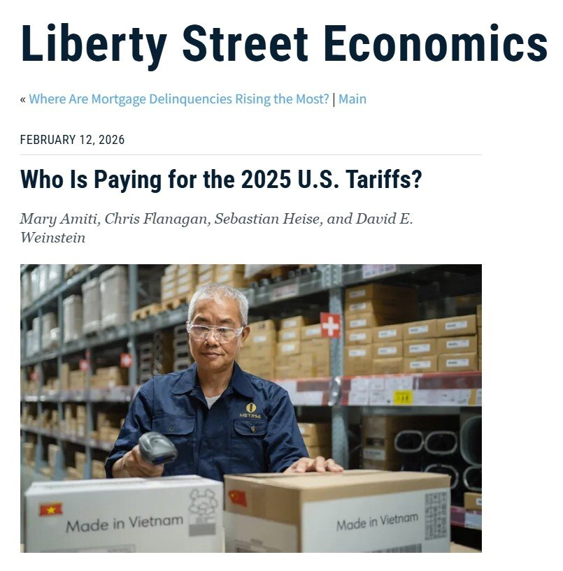 뉴욕 연방준비은행 리서치 블로그 발표에 따르면 도널드 트럼프 대통령이 주장해온 “외국이 내는 관세”와 달리, 실제 부담의 대부분은 미국 기업과 소비자가 떠안은 것으로 나타났다.