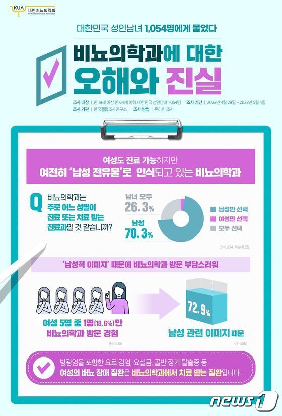 설문에 참여한 여성 506명 중 72.9%가 남성과 관련된 비뇨의학과 이미지로 인해 방문이 부담스럽다고 답했다.