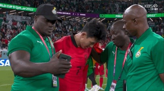 한국 대표팀이 카타르 월드컵 조별리그 2차전에서 아쉽게 패배했다. 부상으로 얼굴이 팅팅 부은 주장 손흥민(토트넘)이 끝내 눈물을 보인 가운데, 가나 축구대표팀의 한 관계자가 옆에서 셀카를 찍는 모습이 포착돼 빈축을 샀다.