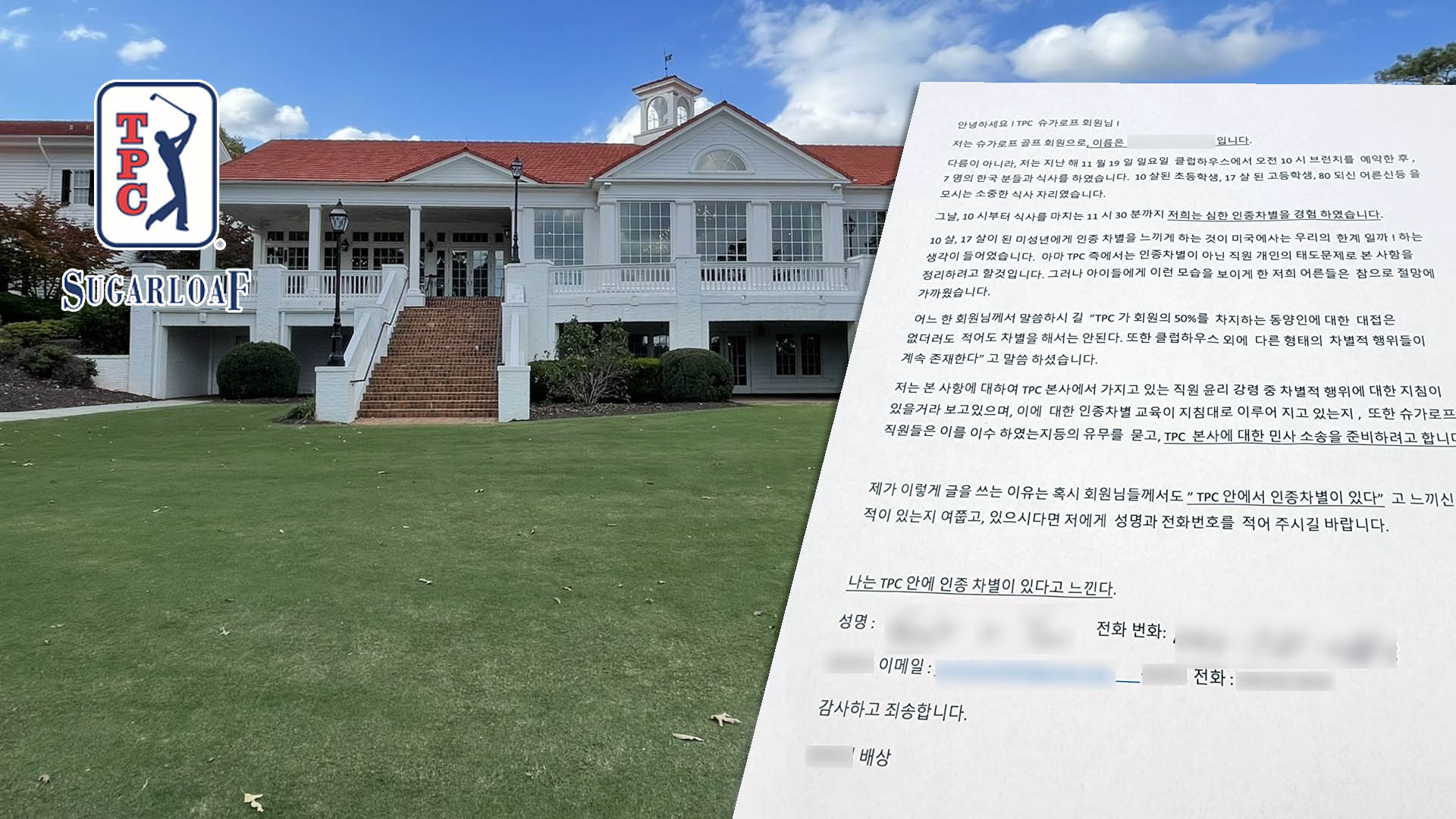 문서에는 자신의 실명과 연락를 밝한 Y씨가 지난 해 11월 19일(일) 클럽하우스에서 직원으로부터 심한 인종차별을 경험했다면서 “TPC 안에서 인종차별이 있다”고 느낀 다른 회원이 있는지를 확인하는 내용을 담고 있다.