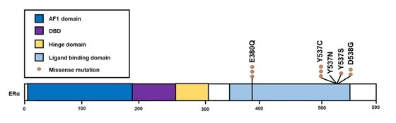 그림 1. 연구에서 사용한 5가지 종류의 ESR1 유전자 돌연변이© 강남세브란스